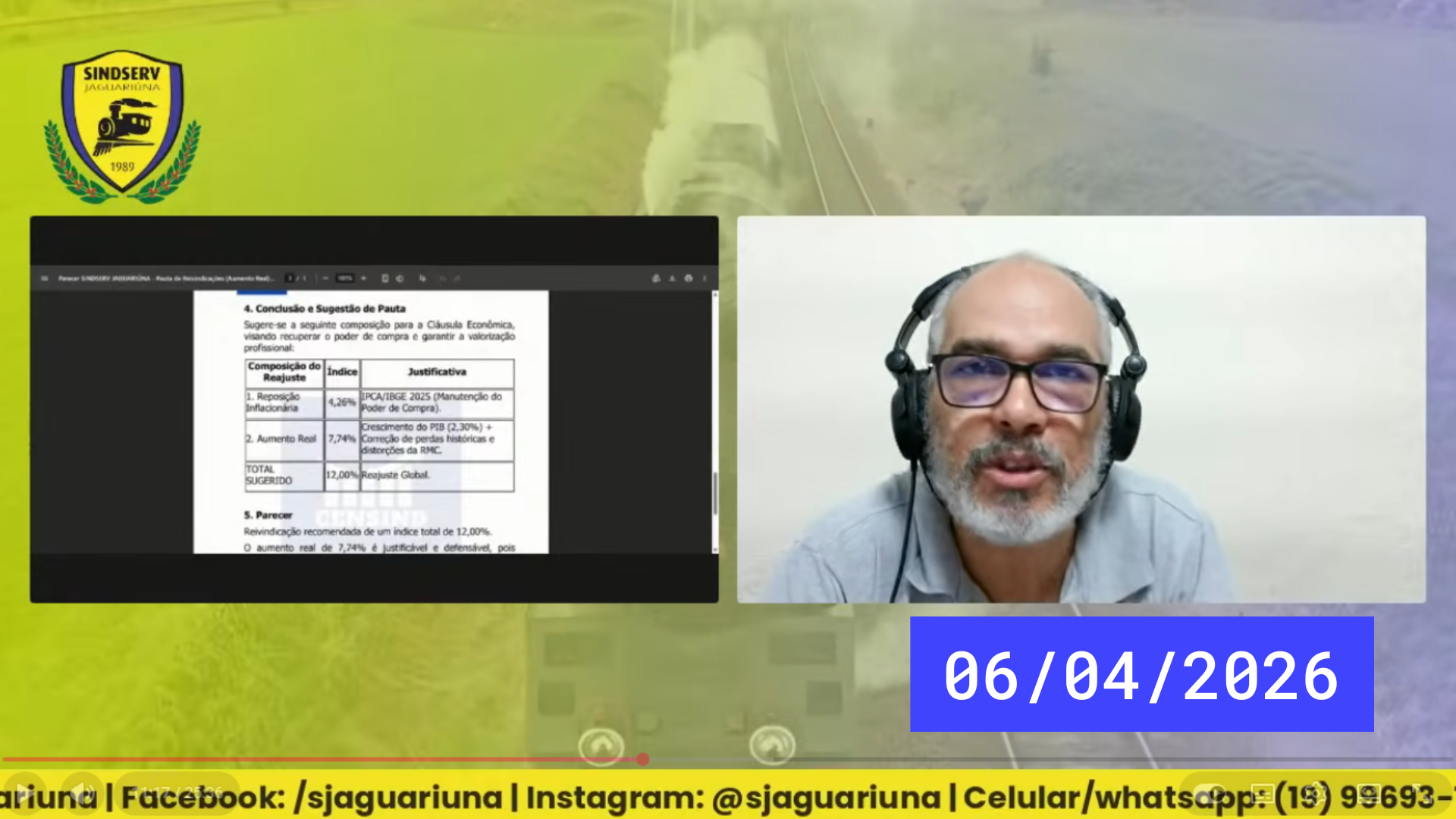 📺 Onde: Canal do SINDSERV Jaguariúna no YouTube